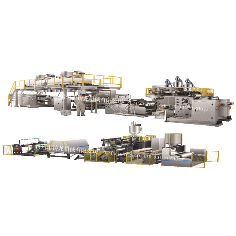 鑄龍ZLX-LM擠出淋膜復(fù)合機(jī)組系列,利用PE/EVA/PP/TPU/POE等熱塑材料的擠出工藝,對(duì)基材進(jìn)行單/雙面覆膜或多層復(fù)合,形成具有多種功能的復(fù)合制品。該系列設(shè)備擁有多種模塊化結(jié)構(gòu),通過模塊組合,可以實(shí)現(xiàn)低速、中速、高速、超薄、超高克重淋膜復(fù)合功能,適用淋膜基材涵蓋薄膜、無紡布、珍珠棉、發(fā)泡卷材、紙、紡織品、編織布、針刺布、水刺布、網(wǎng)格布、功能隔膜、金屬箔、鍍鋁膜等。通過單機(jī)、雙機(jī)、多機(jī)以及單層/共擠、預(yù)熱、預(yù)涂、復(fù)合等功能選配,可以滿足食品、外包裝、裝飾品、建材、農(nóng)業(yè)、光電、車船航天功能材料等領(lǐng)域的廣泛需求。
